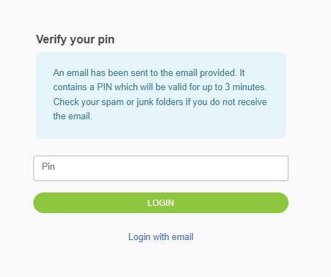 2. Check your email for your verification PIN (Note: This code expires after 3 minutes).