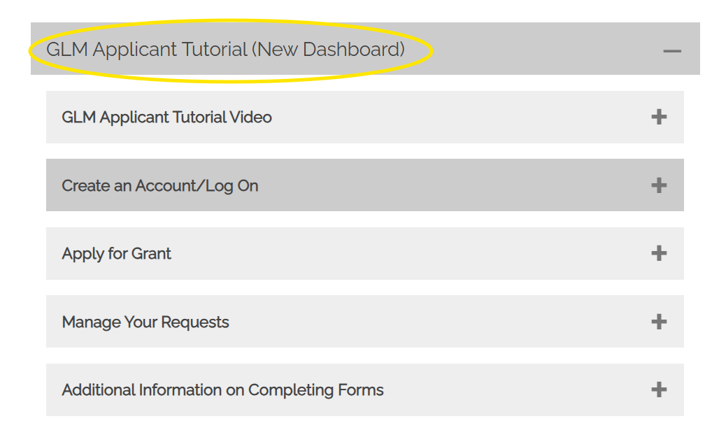 For written step-by-step instructions, click on the link, then follow the menu options under “GLM Applicant Tutorial (New Dashboard)” (see image).